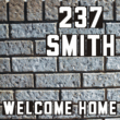 Welcome Home JNL gets its inspiration from metal letters and numbers affixed to homes, posts and mailboxes in the 1920s and 1930s. The block style of lettering that was silk screened onto enameled rectangles of steel was especially popular during that time period.